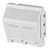 Kanalanschlusseinheit zur Aufnahme von ein oder zwei Einzelmodulen in Keystonebauform, Steckrichtung des Moduls ca. 30° nach unten geneigt, Zugentlastung am Modul, Staubschutzklappen, Geeignet für Kanäle mit 45er Rastbefestigungen mit 4,6 mm Rastung, Montagerichtung waagrecht und senkrecht, Farbe der Abdeckteile ähnlich reinweiß RAL 9010, Oberfläche glänzend, nicht geeignet für E-DAT modul Cat. 6, A K Jack - KeystoneReferenzliste auf Anfrage und im Internet unter www -connect , Varianten: 1 Port, 2 Port