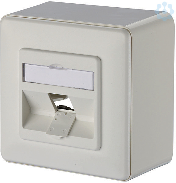 Aufputz-Anschlusseinheit 85 x 85 x 43 mm für alle Einzelmodule in Keystonebauform (Achtung: E-DAT modul Kupplungen 8(8) nur mit geeignetem Patchkabel), Steckrichtung des Moduls 45° nach unten geneigt, Zugentlastung am Modul, mit Sichtfenster für beiliegende Beschriftungseinlage, Beschriftungsbogen 209 x 294 mm siehe Zubehör, integrierte Staubschutzklappen (auch farbig erhältlich), Abdeckteile reinweiß RAL 9010, Oberfläche matt strukturiert, Varianten: 1 Port, 2 Port, 3 Port