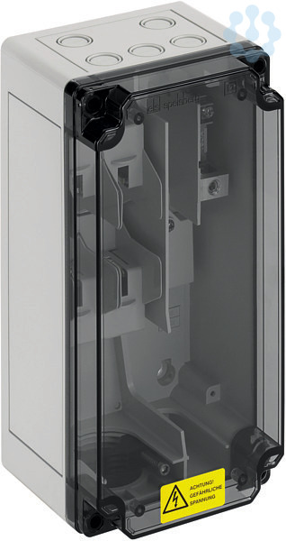 Netzanschlusskasten, Industrie Qualität, für 230 V Drehstrom-Netze (L1-L2-PE), In=25 A, Imax=63 A, bestückt mit: 2 x NH00 Sicherungselement, 1 x PE-Klemme, 1 x Parkbucht für 2 AdernAnschlussklemmen Zuleitung: Rahmenklemme (6-50qmm CU, 10-50qmm AL)Anschlussklemmen Abgang: Schellenanschluss (2x 2,5-50qmm CU), Deckel transparent