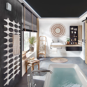 Ausführung mit Bewegungsmelder: Barrierefreies Produkt, da automatisches Ein- / Ausschalten über Bewegungssensor. Alle 4 Betriebsprogramme wählbar. Reihenfolge der Leistungsstufen erfolgt je nach gewähltem Betriebsprogramm. Betrieb ohne Schalter möglich, optional zusätzlich über separaten Schalter schaltbar. Keine Einschaltverzögerung. Nachlaufzeit stufig über leicht zugängliche Taster einstellbar: 0/8/17/25 min. Eingestellte Zeit wird mittels LEDs während der Einstellung angezeigt. Reichweite des Bewegungsmelders: 5 m. Horizontaler Erfassungsbereich des Bewegungsmelders: 100°. Vertikaler Erfassungsbereich des Bewegungsmelder: 82°. Verdeckte Ansaugung, mit elektrisch betätigtem Innenverschluss. Nicht drehzahlsteuerbar. Betriebsprogramme, Einstellbar über Jumper im Gerät. Komfortprogramm (voreingestellt), Benutzer anwesend: Stufe 1, Nachlaufzeit: Stufe 2, Nachtprogramm, Benutzer anwesend: Stufe 2, Nachlaufzeit: Stufe 1, Sparprogramm, Benutzer anwesend: Stufe 1, Nachlaufzeit: Stufe 1, Powerprogramm, Benutzer an