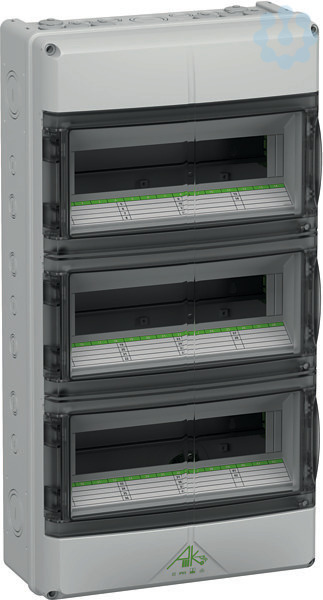 Kleinverteiler, Industrie Qualität, 3-reihig, 42 Teilungseinheiten, 150mm Schienenabstand, integrierte Belüftungselemente zur Verminderung der Kondenswasserbildung, oben elastische Einführungen, Abdeck- und Beschriftungsstreifen, mit zusätzlichen Doppelmembranstutzen und weiterem Zubehör, schraubenlose PE/N-Klemmschiene mit jeweils 6 schraubbaren Klemmstellen 2,5-16qmm, 21 / 2 x 14 schraubenlosen Klemmstellen 1,5mm-4qmm