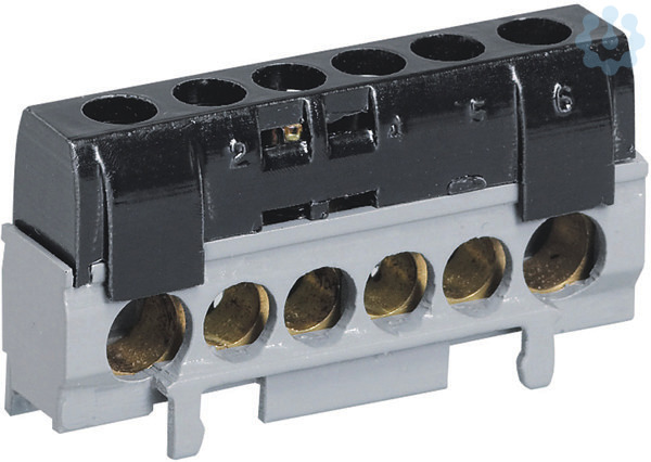 Legrand Klemmenleiste IP 20, berührungssicher, schwarz, für Schienenmontage (Schiene 12 x 2 mm) bzw. Verteilermontage, Kennzeichnung z.B. mit Duplix, Eingang: 1 x 10 bis 35 mm², Abgang: 5 x 6 bis 25 mm², Länge: 62 mm, max. 100 A/400 VAC bei 25 mm² Eingang, max. 80 A /400 VAC bei 16 mm² Eingang, nach IEC 60998-2-1.