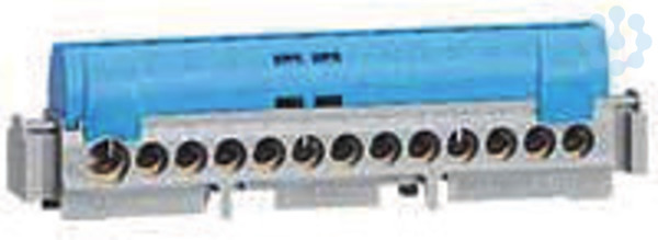 Legrand Klemmenleiste IP 20, berührungssicher, blau, für Schienenmontage (Schiene 12 x 2 mm) bzw. Verteilermontage, Kennzeichnung z.B. mit Duplix, Eingang: 1 x 6 bis 25 mm², Abgang: 12 x 1,5 bis 16 mm², Länge: 113 mm, max. 100 A/400 VAC bei 25 mm² Eingang, max. 80 A /400 VAC bei 16 mm² Eingang, nach IEC 60998-2-1.