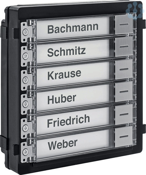Klingeltasten mit Hintergrundbeleuchtung.Inklusive Blenden für nicht benötigte Klingeltasten.Passend für Auf- oder Unterputzrahmen.Bis zu 8 Module in ein ModuVis-System integrierbar.