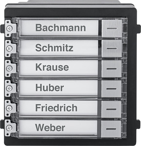 Klingeltasten mit Hintergrundbeleuchtung.Inklusive Blenden für nicht benötigte Klingeltasten.Passend für Auf- oder Unterputzrahmen.Bis zu 8 Module in ein ModuVis-System integrierbar.