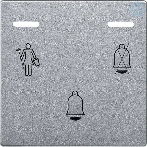 Elektronische Klingeltaste mit zwei LED-Anzeigen Klingel durchgestrichen/Zimmermädchen. Für den Einsatz im Hotel als Klingeltaster an den Zimmertüren. Ansteuerungsmöglichkeiten der beiden LED-Anzeigen (Bitte nicht stören - rote LED, Bitte Zimmer aufräumen - grüne LED) über entsprechenden Schalter-Einsatz und Wippe für Serienschalter mit Aufdruck. Es können beliebige Wechselspannungsläutewerke mit einer Stromaufnahme von 10-500 mA angeschlossen werden. Die Versorgung erfolgt über einen handelsüblichen Sicherheitstransformatorxx Mit Kurzschluss- und Überspannungsschutz. Mit Schraubklemmen. Eingangsspannung min. AC 6 V, max. AC 24 V (SELV). Schaltstrom min. 10 mA, max. 500 mA. Anschlussklemmen Schraubklemmen für 0,8-1,5 mm². Zu komplettieren mit Wippe für Serienschalter mit Aufdruck System M 4326xx, 4356xx Material Thermoplast edelmatt. Farbe aluminium.