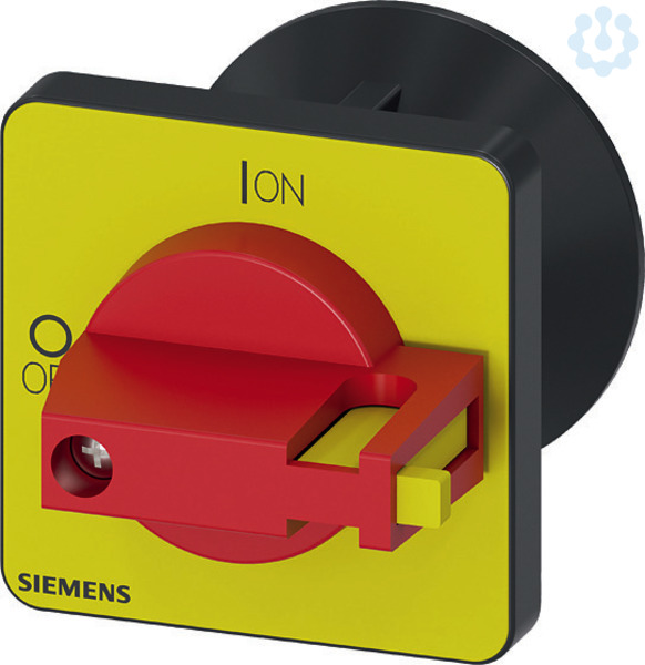 Knebel, rot/gelb 48x48 mm Frontbefestigung Zentrallochbefestigung 22,5 mm mit Kupplungsteil für Welle 6x6 mm, Zubehör für Lasttrennschalter 3LD3 Der Haupt- und Not-AUS-Schalter 3LD als Reparaturschalter für eine sichere Abschaltung von Lasten in unterschiedlichsten Umgebungen. Die Einsatzmöglichkeiten der Netztrenneinrichtungen 3LD sind vielfältig. Nach Netztrennungen sorgen sie für die sichere Freischaltung der gesamten elektrischen Ausrüstung, schalten so zum Beispiel Drehstrommotoren, aber auch Klima- und Lüftungsanlagen. 3LD haben sich in vielen Bereichen bewährt, insbesondere in Be- und Verarbeitungsmaschinen des Maschinen- und Förderanlagenbaus, in der chemischen oder in der Nahrungsmittel- und Getränkeindustrie. Die Siemens Haupt- und Not-AUS-Schalter 3LD zeichnen sich vor allem aus durch: 1. Modularer Aufbau, schnelle einfache Montage von Hilfsschaltern, N- PE-Klemme oder 4. Pol. 2. Vielseitig und weltweit einsetzbar dank internationaler IEC-, UL-, sowie Schiffbau Approbationen. 3. Schutzart bis IP 65