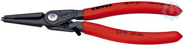 48 31 J2 Präzisions-Sicherungsringzange hoch belastbar im Dauereinsatz: bis zu 10-fach höhere Standzeit gegenüber angedrehten Spitzen. Mit eingesetzten Spitzen für sicheres Arbeiten. Geschraubtes Gelenk: präziser, spielfreier Gang der Zange. Rutschhemmender Kunststoffüberzug an den Griffen. mit Überdehnungsschutz (durch Anschlag einstellbar). Einstellung mittels Innensechskant-Schraube. Ideal für die Serienfertigung, da eine Überdehnung der Ringe wirksam vermieden wird. DIN 5256 C. gerade Spitzen. mit Spreizbegrenzung zwecks normgerechter Montage gemäß DIN 472. die einstellbare Anschlagschraube verhindert ein Überdehnen der Ringe. - Kapazität für Bohrungsdurchmesser: Ø 19???60mm - Spitzen (Durchmesser): Ø 1,8mm