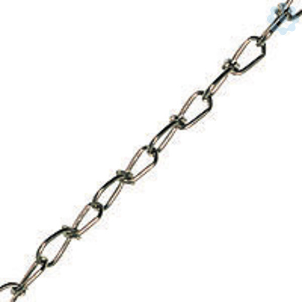 Knotenkette, nach DIN 5686, nicht geprüft, Material: galvanisch verzinkt, Maße: 1,6 mm x 23,0 mm x 7,0 mm, Gewicht : 6 kg / 100m, Beanspruchungsgrenze: 22 kg (errechneter Wert, nicht geprüft), Meterware, max. Bundlänge = 30 m