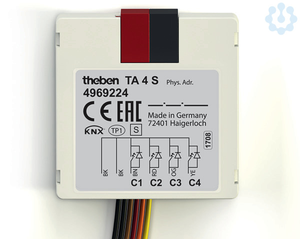 4-fach Binäreingang-Tasterschnittstelle, Kabelanschluss 6-polig, NTC Eingänge für Ist-Temperaturerfassung, Können mit konventionellen Tastern/Schaltern in Unterputzdosen eingebaut werden, Freie Zuordnung der Funktionen: Schalter/Taster, Dimmen, Jalousie, Wertgeber, Zähler, Sequenzen, Temperatur messen, LED steuern, Flexible LED-Ansteuerung, dank erhöhtem Ausgangsstrom von 3 mA können handelsübliche LEDs und Low Curent LEDs angesteuert werden, Eingänge umparametrierbar zu Ausgängen mit parametrierbarer Blink- und Pulsierfunktion, Kennzeichnung der Adernpaare über Farbcodierung, Seitliche Vertiefungen am Gehäuse für die Befestigungskrallen der Schalter/Taster