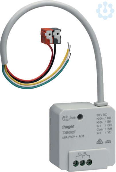 Schalt-/Jalousieaktor 2/1-fach + 2 Eingänge KNX easy, 6A, UP. Unterputz- Schalt-/Jalousieaktor mit potentialfreien Schließerkontakten zum Schalten von unabhängigen Lasten oder zur Ansteuerung eines Motorantriebes sowie zusätzliche Binäreingänge zum Anschluss von konventionellen Taster/Schalter. Mit integriertem Busankoppler, KNX Busanschluss über vorkonfektionierte Leitung, Last-Schraubklemmen. LED-Taste für Handbedienung oder als Programmiertaste. Funktionen: EIN/AUS, Zeitschalterfunktion mit Ausschaltvorwarnung, Zwangssteuerung mit Statusanzeige, Automatikfunktion de-/aktivierbar, Lastabwurf durch Kanalabschaltung, 64 Szenenfunktionen. Rollladen-/Jalousiefunktion: Auf-/Ab-Betrieb mit Lamellenwinkelverstellung, Positionierungsfunktion und Lamellenverstellung für Jalousie in Prozent-Parametrierung. Statusobjekte für die Position der Lamellen in Prozent und der oberen/unteren Endlage. Zwangssteuerung mit Statusanzeige und 3 Alarmobjekte mit unterschiedlicher Prioritätssteuerung. Automatikfunktion de-/aktivierb