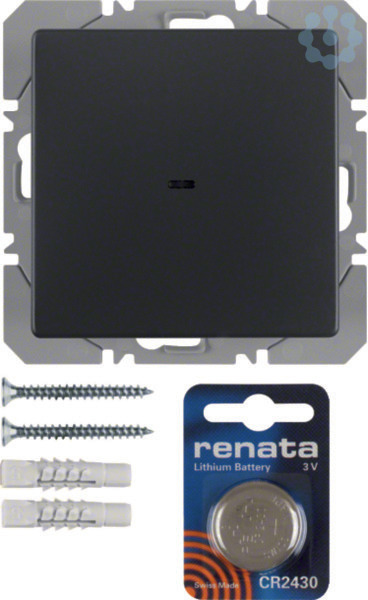 KNX-Funk Wandsender 1fach flach quicklink Q.1/Q.3 anthrazit, samt. KNX-Funk Wandsender 1fach flach quicklink für die Funk Fernbedienung zugeordneter KNX-Funk Empfänger. Flache Aufputz-Montage und Kombinationserweiterung mit einer Lithium Knopf-Batterie 3 V Typ CR 2430. Integration via KNX-Funk Medienkoppler AP ins KNX-TP-System. Werkzeuglose quicklink-Konfiguration über Tasten und LED-Anzeige, obere und untere Bedienfläche frei konfigurierbar, Bedienflächen als Ein- oder Zweiflächenbedienung konfigurierbar, mit Sendestatus- und Batteriestatus-LED rot/grün/orange, mit Konfigurations-LED, Resetfunktion (auf Werkseinstellung).  quicklink Funktionen: Schalten, Dimmen, Jalousie, 2 Szenen, Zeitschaltung, Taster Schließer, Memory.  easy Zusatz-Funktionen: +6 Szenen, Betriebsart Ein/Aus, 1 Tastensteuerung Auf/Ab.  ETS Zusatz-Funktionen: +6 Szenen, Betriebsart Ein/Aus, Taster, Zustandsanzeige, Dimmwert.