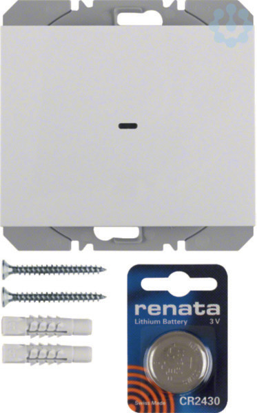 KNX-Funk Wandsender 1fach flach quicklink K.1 polarweiß, glänzend. KNX-Funk Wandsender 1fach flach quicklink für die Funk Fernbedienung zugeordneter KNX-Funk Empfänger. Flache Aufputz-Montage und Kombinationserweiterung mit einer Lithium Knopf-Batterie 3 V Typ CR 2430. Integration via KNX-Funk Medienkoppler AP ins KNX-TP-System. Werkzeuglose quicklink-Konfiguration über Tasten und LED-Anzeige, obere und untere Bedienfläche frei konfigurierbar, Bedienflächen als Ein- oder Zweiflächenbedienung konfigurierbar, mit Sendestatus- und Batteriestatus-LED rot/grün/orange, mit Konfigurations-LED, Resetfunktion (auf Werkseinstellung).  quicklink Funktionen: Schalten, Dimmen, Jalousie, 2 Szenen, Zeitschaltung, Taster Schließer, Memory.  easy Zusatz-Funktionen: +6 Szenen, Betriebsart Ein/Aus, 1 Tastensteuerung Auf/Ab.  ETS Zusatz-Funktionen: +6 Szenen, Betriebsart Ein/Aus, Taster, Zustandsanzeige, Dimmwert.