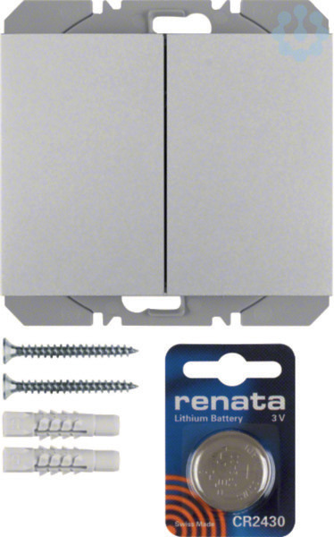 KNX-Funk Wandsender 2fach flach quicklink K.5 alu, lackiert. KNX-Funk Wandsender 2fach flach quicklink für die Funk Fernbedienung zugeordneter KNX-Funk Empfänger. Flache Aufputz-Montage und Kombinationserweiterung mit einer Lithium Knopf-Batterie 3 V Typ CR 2430. Integration via KNX-Funk Medienkoppler AP ins KNX-TP-System. Werkzeuglose quicklink-Konfiguration über Tasten und LED-Anzeige, obere und untere Bedienfläche frei konfigurierbar, Bedienflächen als Ein- oder Zweiflächenbedienung konfigurierbar, mit Sendestatus- und Batteriestatus-LED rot/grün/orange, mit Konfigurations-LED, Resetfunktion (auf Werkseinstellung). quicklink Funktionen: Schalten, Dimmen, Jalousie, 2 Szenen, Zeitschaltung, Taster Schließer, Memory. easy Zusatz-Funktionen: +6 Szenen, Betriebsart Ein/Aus, 1 Tastensteuerung Auf/Ab. ETS Zusatz-Funktionen: +6 Szenen, Betriebsart Ein/Aus, Taster, Zustandsanzeige, Dimmwert.