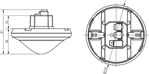 KNX-Präsenzmelder für Deckenmontage, 2 Kanäle Licht zur Steuerung von 2 Lichtgruppen, Schalten oder Konstantlichtregelung, Betrieb als Voll-oder Halbautomat umschaltbar, Kanal Helligkeit mit zyklischer Ausgabe, Kanal für Raum-Überwachung, Verkürzung der Nachlaufzeit Licht bei kurzer Anwesenheit, Mischlichtmessung, Runder Erfassungsbereich, Licht-Ausschaltverzögerung einstellbar und selbstlernend, Umschaltung zwischen 2 Helligkeits-Sollwerten, Helligkeits-Sollwerte über Bus einstellbar, Stand-by Funktionalität, 2 Präsenz-Kanäle mit Ein-und Ausschaltverzögerung, Parameter fernbedienbar, Master/Slave Betrieb wählbar, Testfunktionen, Szenensteuerung mit zwei Szenen, 8-bit Szenen, integrierter Busankoppler
