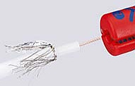16 60 100 SB Abisolierwerkzeug für Koaxialkabel Zum Abmanteln und Abisolieren aller gängigen Koaxialkabel von Ø 4,8 bis 7,5 mm (z. B.: für TV- und Satellitenempfang), auch für PVC-Flex 3 x 0,75 mm² geeignet. Mit Längenskala 5,0 bis 20,0 mm. Zweischaliges, aufklappbares Abisolierwerkzeug. Mit Öffnungsfeder und Sperrklinke. - Kabeltyp: Koaxialkabel 4,8 - 7,5 Rundkabel 3 x 0,75 mm²