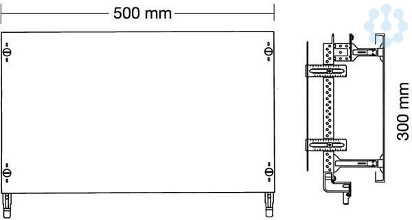 Innenausbausystem, Kombi-Sets, montiert auf EDF-Profil, für Montageplatte, Rasteinheit 2 RE = 300 mm, Feldbreite 2 = 500 mm, 48 Platzeinheiten, Montageplatten aus Stahlblech 2 mm, in der Tiefe stufenlos über Tiefbauwinkel verstellbar, Abdeckungen aus Kunststoff, 90 Grad Druck-Drehverschluss, RAL 7035, einsetzbar ab einer Schranktiefe von 200 mm, Kombi-Sets werden oben oder unten am Verteilerfeld eingesteckt und auf der anderen Seite am Schrank befestigt. Die EDF-Profilschienen und Feldverbinder sind im Lieferumfang enthalten.