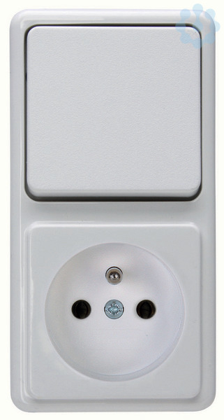 Aufputz, Kombination Universalschalter (Aus/Wechselschalter) und Mitten- Schutzkontakt-Steckdose ohne erhöhtem Berührungsschutz, 10AX/16A, 250V~, IP20, STANDARD, arktis