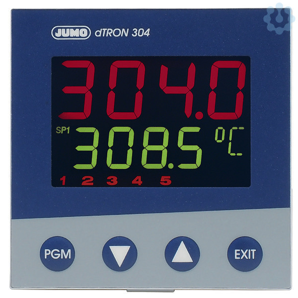 Der PID-Regler zum Schalttafeleinbau besitzt 1 Universaleingang, 2 Relaisausgänge (Wechsler), 2 Binärein-/Ausgänge und eine Spannungsversorgung für Zweidrahtmessumformer. Der Spannungsversorgungsbereich beträgt AC 110 bis 240 V +10/-15 %, 48 bis 63 Hz. Als Temperaturregler TR nach DIN EN 14 597 kann das Gerät in wärmeerzeugenden Anlagen für die Regelung und Steuerung der Temperatur von flüssigen und gasförmigen Medien verwendet. Das kontrastreiche, mehrfarbige LCD-Display für Istwert, Sollwert und Bedienerführung und besteht aus zwei vierstelligen 7-Segment-Anzeigen. Vier Tasten ermöglichen eine einfache Bedienung. Der Kompaktregler kann als Zweipunkt-, Dreipunkt-, Dreipunkt-Schrittregler oder stetige Regler konfiguriert werden. Die Linearisierungen der üblichen Messwertgeber sind gespeichert, eine kundenspezifische Linearisierungs-Tabelle ist programmierbar. Für die komfortable Konfiguration über einen PC ist ein Setup-Programm lieferbar. Der elektrische Anschluss erfolgt rückseitig über Schraubklemmen. Der