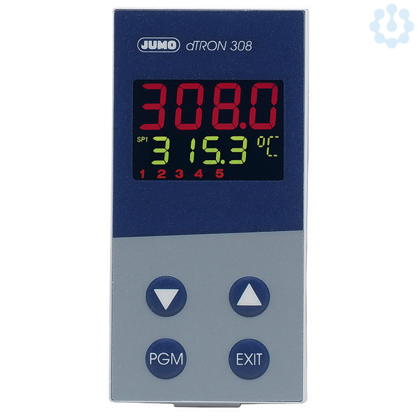 Der PID-Regler zum Schalttafeleinbau besitzt 1 Universaleingang, 2 Relaisausgänge (Wechsler), 2 Binärein-/Ausgänge und eine Spannungsversorgung für Zweidrahtmessumformer. Der Spannungsversorgungsbereich beträgt AC 110 bis 240 V +10/-15 %, 48 bis 63 Hz. Als Temperaturregler TR nach DIN EN 14 597 kann das Gerät in wärmeerzeugenden Anlagen für die Regelung und Steuerung der Temperatur von flüssigen und gasförmigen Medien verwendet. Das kontrastreiche, mehrfarbige LCD-Display für Istwert, Sollwert und Bedienerführung und besteht aus zwei vierstelligen 7-Segment-Anzeigen. Vier Tasten ermöglichen eine einfache Bedienung. Der Kompaktregler kann als Zweipunkt-, Dreipunkt-, Dreipunkt-Schrittregler oder stetige Regler konfiguriert werden. Die Linearisierungen der üblichen Messwertgeber sind gespeichert, eine kundenspezifische Linearisierungs-Tabelle ist programmierbar. Für die komfortable Konfiguration über einen PC ist ein Setup-Programm lieferbar. Der elektrische Anschluss erfolgt rückseitig über Schraubklemmen. Der