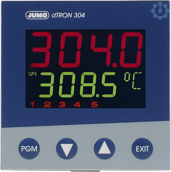 Der PID-Regler zum Schalttafeleinbau besitzt 1 Universaleingang, 2 Relaisausgänge (Wechsler), 2 Binärein-/Ausgänge und eine Spannungsversorgung für Zweidrahtmessumformer. Der Spannungsversorgungsbereich beträgt AC 110 bis 240 V +10/-15 %, 48 bis 63 Hz. Als Temperaturregler TR nach DIN EN 14 597 kann das Gerät in wärmeerzeugenden Anlagen für die Regelung und Steuerung der Temperatur von flüssigen und gasförmigen Medien verwendet. Das kontrastreiche, mehrfarbige LCD-Display für Istwert, Sollwert und Bedienerführung und besteht aus zwei vierstelligen 7-Segment-Anzeigen. Vier Tasten ermöglichen eine einfache Bedienung. Der Kompaktregler kann als Zweipunkt-, Dreipunkt-, Dreipunkt-Schrittregler oder stetige Regler konfiguriert werden. Die Linearisierungen der üblichen Messwertgeber sind gespeichert, eine kundenspezifische Linearisierungs-Tabelle ist programmierbar. Für die komfortable Konfiguration über einen PC ist ein Setup-Programm lieferbar. Der elektrische Anschluss erfolgt rückseitig über Schraubklemmen. Der