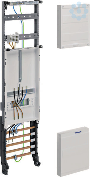 Komplettfeld, universZ,1050mm,1 Zählerplatz,1-feld,NRW,SH,MV,N-sachsen,EON-Mitte. Komplettfeld / Einbausatz univers Z für eHZ zum Aufbau von Zählerplätzen nach DIN VDE 0603, Schnellmontage im Schrank durch Rast-System, bestückt und verdrahtet nach VNB TAB-Bestimmungen, für eHZ- Zählerplätze nach DIN VDE 0603-1 und DIN VDE 0603-2-1. Anlagenseitiger Anschlussraum: Höhe 300 mm, 2-reihig mit Hutschienen, bestückt mit Hauptleitungsabzweigklemmen nach DIN VDE 0603-3-1, 3- oder 5-polig, fingersicher nach DGUV Vorschrift 3 oder bestückt mit: __________ __________ ___________ -Zählerfelder mit integrierter Befestigungs- und Kontaktiereinrichtung (BKE-I) für eHZ zum Einbau von eHZ-Zählertragplatten gemäß DIN VDE 0603-3-2 mit integriertem Zusatzraum (für Kommunikations- und Steuergeräte). Zusatzraum: 1-feldig, Höhe 150 mm, mit Abdeckung geschlossen, Vorprägungen für 12 PLE, plombierbar, mit Hutschiene 12 PLE, Öffnungen für Leitungsführung. Netzseitiger Anschlussraum: Höhe 300 mm bestückt mit CU-Sammelschienen, 12 x 5 mm