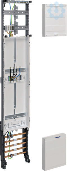 Komplettfeld, universZ, 1350mm, 1ZP/Res., 1-feld, NRW,SH,MV,N-sachsen, EON-Mitte. Komplettfeld / Einbausatz univers Z für eHZ zum Aufbau von Zählerplätzen nach DIN VDE 0603, Schnellmontage im Schrank durch Rast-System, bestückt und verdrahtet nach VNB TAB-Bestimmungen für eHZ- Zählerplätze nach DIN VDE 0603-1 und DIN VDE 0603-2-1. Anlagenseitiger Anschlussraum: Höhe 300 mm, 2-reihig mit Hutschienen bestückt mit Hauptleitungsabzweigklemmen nach DIN VDE 0603-3-1, 3-oder 5-polig, fingersicher nach DGUV Vorschrift 3 oder bestückt mit: __________ __________ ___________ -Zählerfelder mit integrierter Befestigungs- und Kontaktiereinrichtung (BKE-I) für eHZ zum Einbau von eHZ-Zählertragplatten gemäß DIN VDE 0603-3-2 mit integriertem Zusatzraum (für Kommunikations- und Steuergeräte). Zusatzraum: 1-feldig, Höhe 150 mm, mit Abdeckung geschlossen, Vorprägungen für 12 PLE, plombierbar, mit Hutschiene 12 PLE, Öffnungen für Leitungsführung. Netzseitiger Anschlussraum Höhe 300 mm bestückt mit CU-Sammelschienen, 12 x 5 mm, 5-
