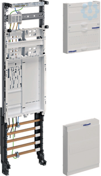 Komplettfeld,univers Z,1 Zählerplatz,BKE-I,H=900mm,1-feldig. Komplettfeld / Einbausatz univers Z für eHZ zum Aufbau von Zählerplätzen nach DIN 43870, Schnellmontage im Schrank durch Rast-System, bestückt und verdrahtet nach VNB TAB-Bestimmungen für eHZ-Zählerplätze nach DIN VDE 603-1 (VDE 0603-1). Oberer Anschlussraum: 1-reihig Höhe 150 mm mit einer Hutschiene, 2-reihig Höhe 300 mm mit zwei Hutschienen, bestückt mit Hauptleitungsabzweigklemmen 3-/4- oder 5-polig, fingersicher nach BGVA3 oder bestückt mit __________ __________ ___________ -Zählerfelder mit integrierter Befestigungs- und Kontaktiereinrichtung (BKE-I) für eHZ, zum Einbau gemäß DIN 43870, eHZ-Zählertragplatte mit integriertem Zusatzraum (für Kommunikations- und Steuergeräte). Zusatzaum: 1-feldig, Höhe 150 mm, mit Abdeckung geschlossen, Vorprägungen für 12 PLE, plombierbar, mit Hutschiene 12 PLE, Öffnungen für Leitungsführung. Unterer Anschlussraum: Höhe 300 mm bestückt mit Hutschiene oder CU-Sammelschienen, 12 x 5 mm, 4-polig / 5-polig oder bestü