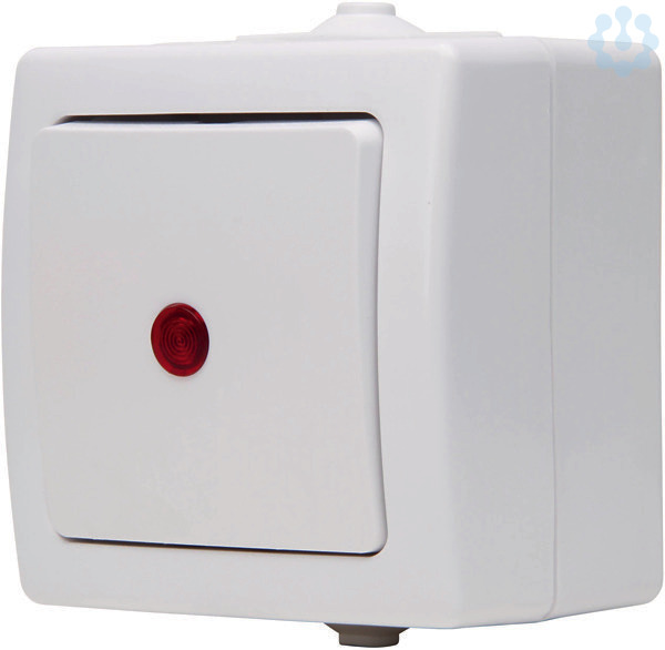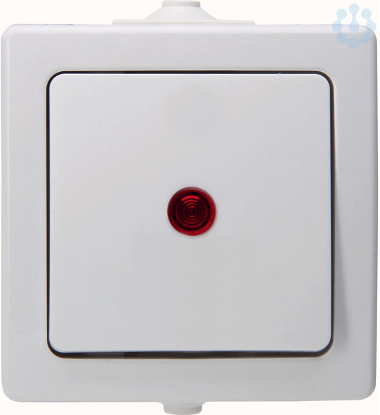 Aufputz-Feuchtraum Kontrollschalter (Aus-/Wechselschalter), mit Linse und eingesetzter Glimmlampe (beleuchtet) im Design NAUTIC und der Farbe arktisweiß mit einer Nennspannung von 250V~ sowie einem Schaltvermögen vo n 10AX. Schutzart IP44