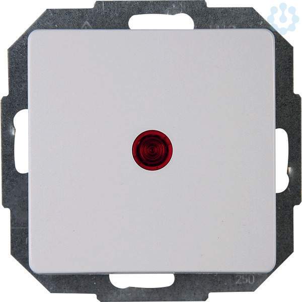Kontrollschalter (Aus-/Wechselschalter), mit Linse und eingesetzter Glimmlampe (beleuchtet) im Design PARIS und der Farbe arktisweiß mit einer Nennspannung von 250V~ sowie einem Schaltvermögen von 10AX, Schutzart IP20