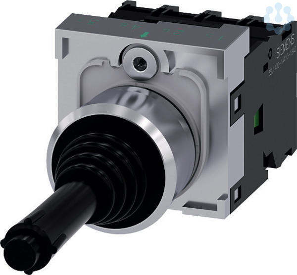 Koordinatenschalter, 22 mm, rund, Metall hochglanz, schwarz, 4 Schaltstellungen, verrastend, mit mechanischer Verriegelung, in der O-Stellung, mit Halter, 1S, 1S, 1S, 1S, Schraubanschluss, Koordinatenschalter SIRIUS ACT für einfache Navigationsaufgaben.Unter dem Markennamen SIRIUS ACT bietet Siemens ein einzigartiges Portfolio an Befehls- und Meldegeräten mit weltweiten Produkt-Zulassungen in vier modernen Designreihen aus robustem Echtmetall und hochwertigem Kunststoff.Das innovative Aufschnappkonzept vereinfacht die Montage so weit, dass dafür nur eine Hand und kein Spezialwerkzeug erforderlich ist. Als Montagebohrungen genügen nutfreie Löcher, da bereits ein 100%iger Verdrehschutz integriert ist.Dank der durchgängig hohen Schutzart sind die robusten Geräte industrietauglich und für den Außeneinsatz geeignet. Sogar die Reinigung mit Hochdruckstrahl ist möglich. Weder Staub, Öle noch aggressive Laugen können den zuverlässigen Betrieb stören.Neben der Standardverdrahtung können die Geräte auch über PROFINET,