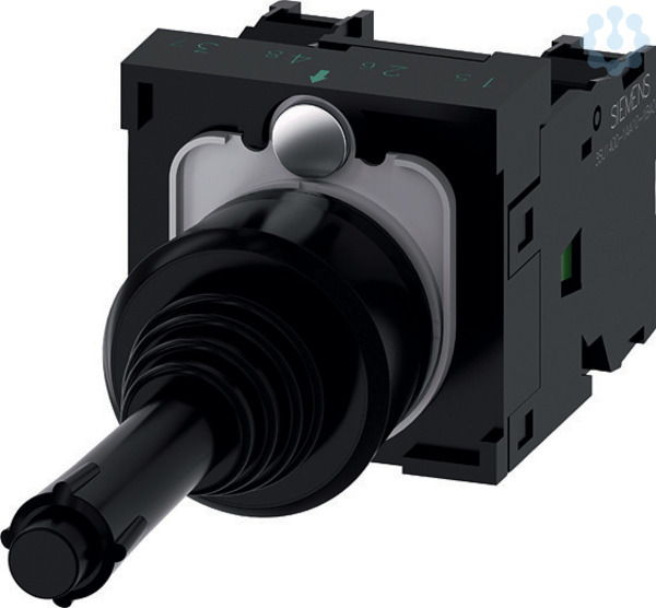 Koordinatenschalter, 22 mm, rund, Kunststoff, schwarz, 2 Schaltstellungen, waagerecht, tastend, mit mechanischer Verriegelung in der O-Stellung, mit Halter, 1S, 1S, Schraubanschluss Koordinatenschalter SIRIUS ACT für einfache Navigationsaufgaben.Unter dem Markennamen SIRIUS ACT bietet Siemens ein einzigartiges Portfolio an Befehls- und Meldegeräten mit weltweiten Produkt-Zulassungen in vier modernen Designreihen aus robustem Echtmetall und hochwertigem Kunststoff.Das innovative Aufschnappkonzept vereinfacht die Montage so weit, dass dafür nur eine Hand und kein Spezialwerkzeug erforderlich ist. Als Montagebohrungen genügen nutfreie Löcher, da bereits ein 100%iger Verdrehschutz integriert ist.Dank der durchgängig hohen Schutzart sind die robusten Geräte industrietauglich und für den Außeneinsatz geeignet. Sogar die Reinigung mit Hochdruckstrahl ist möglich. Weder Staub, Öle noch aggressive Laugen können den zuverlässigen Betrieb stören.Neben der Standardverdrahtung können die Geräte auch über PROFINET, AS-Inte
