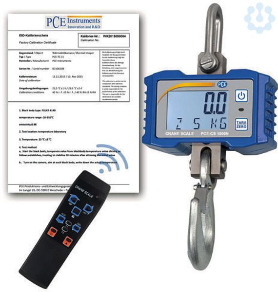 Die Hintergrundbeleuchtung der Kranwaage kann reguliert werden und hilft somit die Betriebszeit zu verlängern. Weitere Funktionen der Kranwaage sind: Brutto / Netto Wiegungen, Summierfunktion, Holdfunktion, Auto Zero OFF Funktion, sowie die Möglichkeit eine vom Nutzer frei einstellbare Messeinheit anzeigen zu lassen. Das bedeutet, dass der Nutzer in der Kranwaage einen Umrechnungsfaktor hinterlegen kann, der das gewogene Produkt nicht in kg sondern z.B. in Metern anzeigt (1 kg = 1,25 m). Die Kranwaage ermöglicht eine lineare Kalibrierung und kann dadurch besonders hohe Genauigkeiten gewährleist