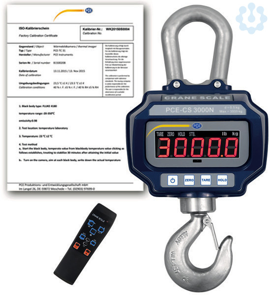 Ziffernhöhe 35 mm Aluminiumgehäuse Akkubetrieb bis zu 200 Std. Summierfunktion Haken mit Wirbel (drehbar) inkl. Schäkel (fest) inkl. Fernbedienung inkl. ISO-Kalibrierzertifikat
