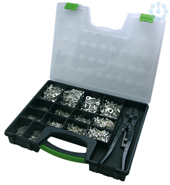 Inhalt: 1.100 Kabelschuhe, Crimpzange (Art. 210830), Pressbereich DIN 0,75-16 mm², Dornverpressung, im Sortimentskasten aus Kunststoff 420 x 350 x 60 mm. 100 Rohrkabelschuhe light, 10, M10, Art. 294040 100 Rohrkabelschuhe light, 16, M8, Art. 294048 100 Rohrkabelschuhe light, 10, M6, Art. 294036 100 Rohrkabelschuhe light, 6, M5, Art. 294024 100 Rohrkabelschuhe light, 6, M6, Art. 294026 100 Rohrkabelschuhe light, 16, M10, Art. 294050 100 Rohrkabelschuhe light, 2,5, M4, Art. 294006 100 Rohrkabelschuhe light, 1,5, M4, Art. 294000 100 Rohrkabelschuhe light, 2,5, M6, Art. 294010 100 Rohrkabelschuhe light, 1,5, M5, Art. 294002 100 Rohrkabelschuhe light, 2,5, M5, Art. 294008 Sortiment Rohrkabelschuhe, light Inhalt: 1.100 Kabelschuhe, Crimpzange (Art. 210830), Pressbereich DIN 0,75-16 mm², Dornverpressung, im Sortimentskasten aus Kunststoff 420 x 350 x 60 mm. 100 Rohrkabelschuhe light, 10, M10, Art. 294040 100 Rohrkabelschuhe light, 16, M8, Art. 294048 100 Rohrkabelschuhe light, 10, M6, Art. 294036 100 Rohrkabelschuhe
