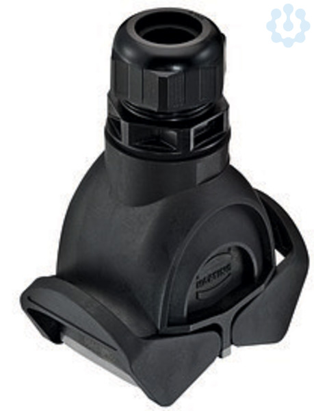 Kupplungsgehäuse, Mit integrierter Kabelverschraubung, Baugröße: 6 B, Querbügel, Polyamid (PA), glasfaserverstärkt, gerader Kabeleingang, 1x M32, Werkstoff Gehäuse: Polyamid (PA), glasfaserverstärkt, RAL 9005 (tiefschwarz), Werkstoff Dichtung: FPM, Schutzart: IP65