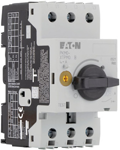 Motorschutzschalter nach IEC/EN60947, 3-polig Baugröße PKM0, mit unverzögertem Kurzschlußauslöser, Schraub und Schnappmontage, mit Schraubklemmen, Kappeneinbaumaß 45mm, Bemessungsbetriebsspannung Ue 690V, Schutzart IP20, fingersicher nach VDE 0106 T. 100, lieferbares Zubehör: Hilfsschalter, Spannungsauslöser, Schaltantrieb, Clipsplatte