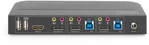 Mit dem DIGITUS® 2-Port KVM-Switch haben Sie die Möglichkeit, zwei 4K-fähige PCs über eine einzige USB-Tastatur und -Maus zu bedienen. Per Knopfdruck oder mitgelieferter Fernbedienung schalten Sie bequem zwischen den beiden PCs um und sparen sich a