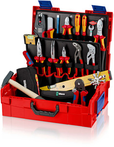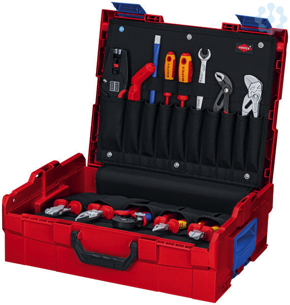 00 21 19 LB E KNIPEX L-BOXX® Elektro robuste Box aus schlag- und stoßfestem ABS-Kunststoff. Bestückt mit 14 KNIPEX-Werkzeugen, insgesamt 63 Markenwerkzeugen, teilweise VDE-geprüft nach DIN EN 60900. Max. Zuladung: 25 kg. Spritzwassergeschützt. Mehrere Boxen können zuverläßig miteinander verbunden werden. Flexible Innenaufteilung. Tragegriff kann platzsparend in einer Vertiefung im Deckel versenkt werden. Ergonomisch geformte Griffe und zusätzliche seitliche Griffschalen für flexibles und komfortables Handling. Mit zweiteiliger Werkzeugtafel aus schmutzabweisenden PP-Hohlkammerplatten. Werkzeugtafeln sind über Klett miteinander verbunden. Deckelteil mit 10 Taschen und 10 elastischen Schlaufen. Bodenteil oben mit 7 Taschen und Lasche zum Aufhängen der Werkzeugtafel. dient auch zum Anheben und Aufstellen der KNIPEX L-BOXX®. Bodenteil unten mit 7 Taschen und 7 elastischen Schlaufen. Abmessungen, außen (B x H x T): 442 x 357 x 151 mm Abmessungen, innen (B x H x T): 375 x 107 x 311 mm. L-BOXX® ist ein eingetragenes