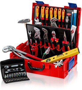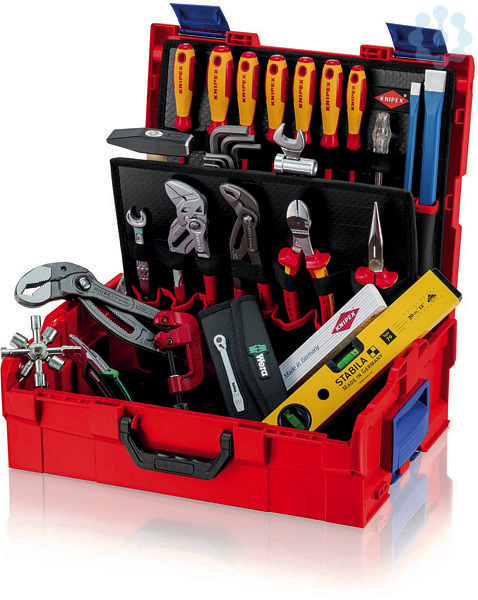 00 21 19 LB S KNIPEX L-BOXX® Sanitär robuste Box aus schlag- und stoßfestem ABS-Kunststoff. Bestückt mit 13 KNIPEX-Werkzeugen, insgesamt 52 Markenwerkzeugen, teilweise VDE-geprüft nach DIN EN 60900. Max. Zuladung: 25 kg. Spritzwassergeschützt. Mehrere Boxen können zuverläßig miteinander verbunden werden. Flexible Innenaufteilung. Tragegriff kann platzsparend in einer Vertiefung im Deckel versenkt werden. Ergonomisch geformte Griffe und zusätzliche seitliche Griffschalen für flexibles und komfortables Handling. Mit zweiteiliger Werkzeugtafel aus schmutzabweisenden PP-Hohlkammerplatten. Werkzeugtafeln sind über Klett miteinander verbunden. Deckelteil mit 10 Taschen und 10 elastischen Schlaufen. Bodenteil oben mit 7 Taschen und Lasche zum Aufhängen der Werkzeugtafel. dient auch zum Anheben und Aufstellen der KNIPEX L-BOXX®. Bodenteil unten mit 7 Taschen und 7 elastischen Schlaufen. Abmessungen, außen (B x H x T): 442 x 357 x 151 mm Abmessungen, innen (B x H x T): 375 x 107 x 311 mm. L-BOXX® ist ein eingetragenes