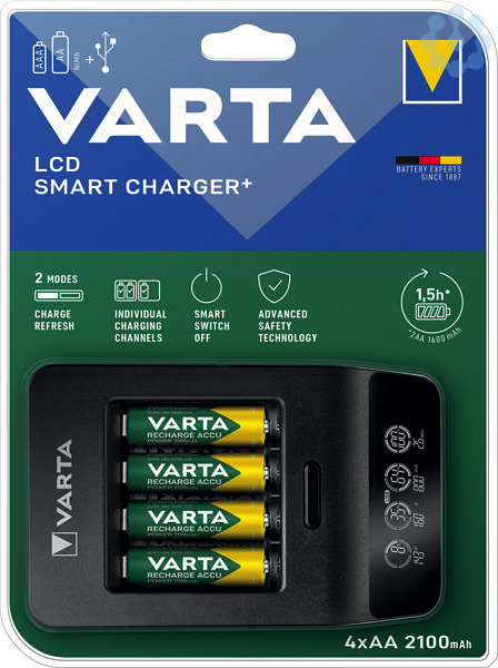 Anwenderoptimiertes Ladegerät mit Einzelschachtladung und umfangreichen Sicherheitsfunktionen für beste Ladeergebnisse. Lädt in zwei Modi: Laden und Auffrischen bis zu 4 AA, AAA. Sorgt mit der größeren, vereinfachten LCD-Anzeige für mehr Komfort. Das Display zeigt V, mAh und Minuten. Der Charger erkennt defekte Zellen besser und weist umfassende Sicherheitseigenschaften auf. Er verfügt über einen zusätzlichen USB-Ausgang, um externe Geräte zu laden und einen AD Adapter.