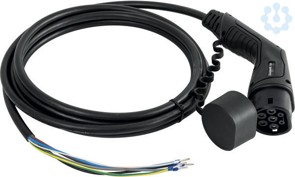 Ladekabel ? AC-Ladekabel mit Kupplung Typ 2 gemäß IEC 62196-2 und offenem Leitungsende, mit Schutzkappe, Leitungsaufbau 5 x 2,5mm² + 1 x 0,5mm², IP54 (mit Schutzkappe), Ladeleistung bis maximal 11 kW (3-phasig), Ladestrom bis maximal 16 A, zur Installation an einer Spelsberg Wallbox