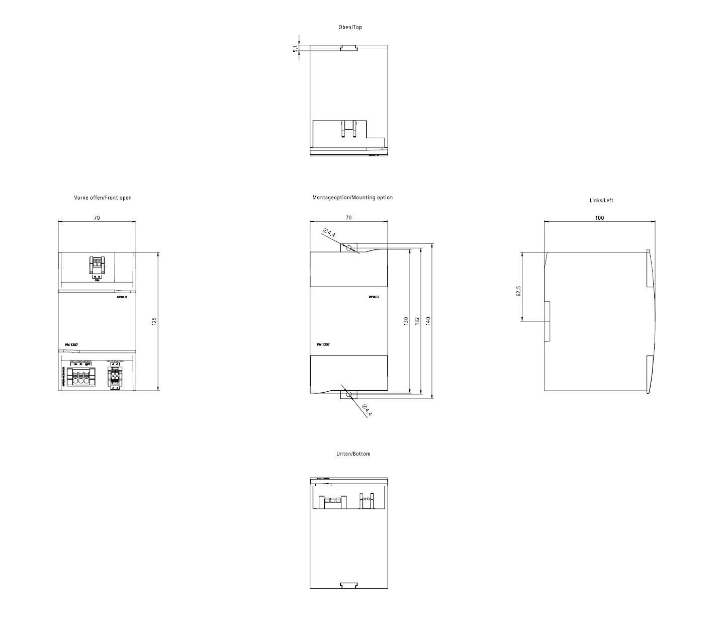 SIMATIC S7-1200 Powermodul PM 1207 EX 24V/5A Geregelte Stromversorgung Eingang: AC/DC 120 - 240 V Ausgang: DC 24 V/5 A mit UDI-Diagnoseschnittstelle Die einphasige Laststromversorgung SIMATIC PM1207 (PM = Power Modul) im Design SIMATIC S7-1200 G2 benötigt mit 70 mm Breite nur wenig Platz im Verbund mit der Micro-SPS. Das 5-A-Netzgerät versorgt CPUs mit 24-V-Eingang, Signalmodule und daran angeschlossene Verbraucher. Der Weitbereichseingang sorgt für den problemlosen Anschluss an 1-phasige Netze AC/DC von 120 bis 240 V im Industrie- und Wohnbereich. Die Montage erfolgt auf DIN-Hutschiene oder über Schrauben bei der Wandmontage. Umfangreiche Zertifizierungen wie UL, ATEX und GL ermöglichen einen universellen Einsatz. Egal welche Branche, egal welche Anforderung - Siemens bietet zuverlässige und effiziente Stromversorgungen für jede Anlage.