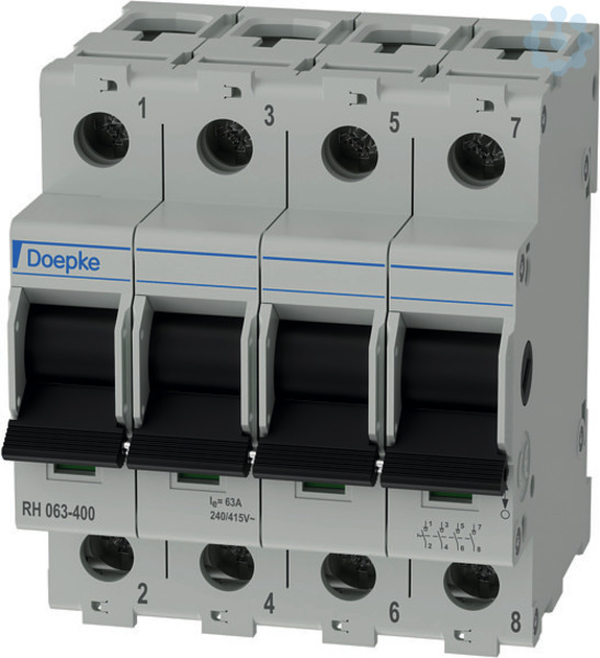 Lastrenn- bzw. Hauptschalter trennen elektrische Verbraucher oder Anlagenteile vollständig und allpolig von der elektrischen Versorgung. Sie schalten auch unter Last oder Überlast. Sie werden zur Abschaltung für Wartungsarbeiten und zum Anlagenschutz eingesetzt. Die Geräte der Baureihe RH sind modulare Hauptlastschalter mit Trennfunktion und zeichnen sich durch eine hohe Verschleißfestigkeit der Kontakte aus. Die Ausführung ermöglicht den Einsatz einer Schaltsperre und entspricht den internationalen Bauvorschriften. Eigenschaften: modularer Aufbau. hohe Kurzschlussfestigkeit und hohes Schaltvermögen. beidseitige Doppelstockklemmen für großen Leiterquerschnitt und Sammelschiene. Schaltstellungsanzeige. Sprungschaltfunktion beim Einschalten. Montageart: Schnellbefestigung auf Tragschiene. Einbaulage beliebig. Einsatzgebiete: Die Geräte der Baureihe RH sind universell einsetzbar, zum Beispiel in der Industrie- und Gebäudetechnik oder in der Hausinstallation. Hinweise: Die Bezeichnung der Geräte der Baureihe RH b