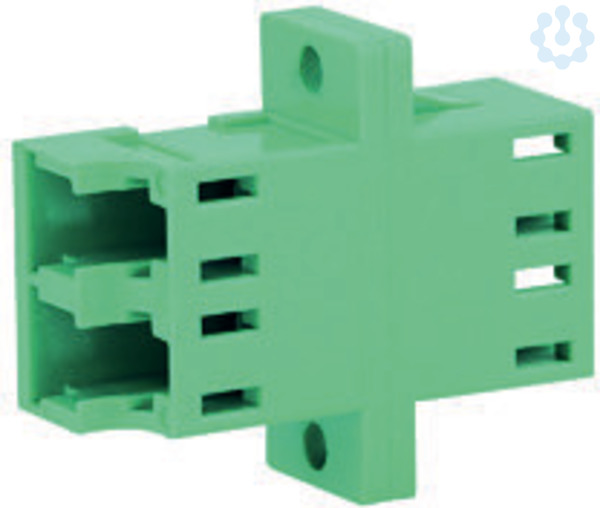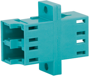 Bezeichnung: LC Duplex Kupplung, Multimode, Keramikhülse, Kunststoffgehäuse, türkis Einbauart: Einschnapp- oder Schraubmontage Gehäusefarbe: türkis Einbaumaß: Z77