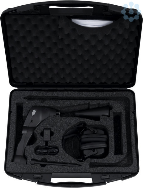 Das Lecksuchgerät findet Anwendung in den verschiedensten Bereichen der Industrie. So wird das Lecksuchgerät zum Beispiel an Druckluft-, Gas-, Dampf- und Vakuumanlagen, sowie an Kälteanlagen und Türdichtungen, verwendet. Die Arbeitsfrequenz bei dem Lecksuchgerät beträgt 40 kHz (± 2 kHz). Der schalldichte Kopfhörer am Lecksuchgerät sorgt dafür, dass auch eine Verwendung in extrem lauter Umgebung ermöglicht wird. Das Lecksuchgerät wird überall dort verwendet, wo es zu Ausströmungen von Gasen aus Leckagen in Rohrleitungssystemen kommen kann. Die durch Ausströmung entstandenen Geräusche liegen oft im Ultraschallbereich und sind somit für das menschliche Gehör nicht wahrzunehmen. Das Lecksuchgerät nimmt diesen Ultraschall über den Schalltrichter auf und wandelt den unhörbaren Ultraschall in hörbare Frequenzen. Der am Lecksuchgerät verbaute Laserpointer ermöglicht eine genaue Anvisierung des Lecks. Der Schalltrichter von dem Lecksuchgerät wurde so konzipiert, dass er in der Lage ist, Schallwellen aufzunehmen und so