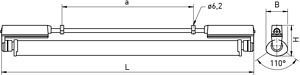 Kunststoffleuchte mit LED-Beleuchtungseinsatz. Einsetzbar in industriellen Anwendungen.Witterungsbeständiges Leuchtengehäuse aus duroplastischem Kunststoff, ahnlich RAL 9010 und RAL 9005. Einsetzbar im Innen- und Außenbereich gemäß Schutzart IP 65. Lampen- und Geräteraum thermisch getrennt. Kurzes Dichtungssystem bestehend aus alterungsbeständigem formstabilem Silikon-/Synthese-Kautschuk.Wahlweise mit Lampenschutzrohr 38 mm oder mit schwenkbarem Schutzrohrreflektor aus PMMA Transopal® (schlagzäh) oder PC Tropal® (bruchsicher) mit innenliegendem Aluminiumreflektor (MIRO-SILVER®).Leuchte montage- und anschlussfertig. Leuchte mit intergriertem Betriebsgerät AC/DC. Zwei stirnseitige Kabeleinführungen M20.Einzel- oder Lichtbandmontage. Deckenbefestigung durch zwei Bügelschellen aus Kunststoff, variabler Befestigungsabstand.