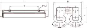 Leuchtengehäuse aus witterungsbeständigem, glasfaserverstärkten Kunststoff. Lampen- und Geräteraum thermisch getrennt. Kurzes Dichtungssystem besteht aus alterungsbeständigem, formstabilen Silikon-/Synthese-Kautschuk. Schwenkbarer Schutzrohr-Reflektor mit innenliegendem Aluminium-Reflektor (MIRO-SILVER®). Arretierung des Schutzrohr- Reflektors in 10°-Schritten möglich.