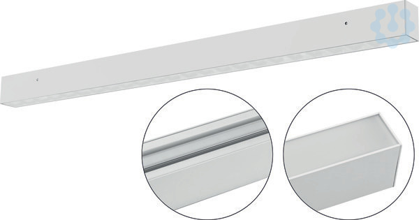Die LED-Anbauleuchte ist eine Up- and down Leuchte und kann aufgrund der hohen Lichtausbeute problemlos als Hauptbeleuchtung fuer zahlreiche Räume eingesetzt werden. Die Lichtverteilung ist 70 downlight (60°. Abstrahlwinkel) und 30 uplight (120°. Abstrahlwinkel). An beiden Seiten befindet sich rueckseitig je eine Kabeleinfuehrung, somit ist ein Durchverdrahten beim Einsatz mehrerer Leuchten problemlos möglich. Die Leuchte kann mit den im Lieferumfang befindlichen 2m langen Seilbahängungen und der transparenten 2,25m langen Anschlussleitung als Pendelleuchte montiert werden. Mit der seperat erhältlichen Wandbefestigung kann die Leuchte wahlweise auch an der Wand befestigt werden. Ebenso sind optional auch Leuchtenverbinder erhältlich. Mittels Schalter kann eine von drei möglichen Farbtemperaturen eingestellt werden. Die möglichen Farbtemperaturen und daraus resultierenden Lumen sind: als Downlight: 3000K (3430lm), 4000K (3675lm) und 5700K (3553lm) und als Uplight: 3000K (1470lm), 4000K (1575lm) und 5700K (1522