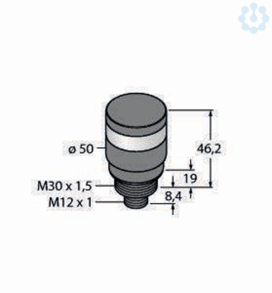 LED-Anzeige, Kompakt-Signalsäule, Schwarzes Kunststoffgehäuse, Schutz gegen elektromagnetische und hochfrequente Störungen, Schutzart IP67, Stecker M12X1, Betriebsspannung: 12?30 VDC oder 21...27 VAC bei jeweils 135mA pro LED-Farbe, Eingänge: PNP / NPN, Einfarbig: Rot (COL 1)